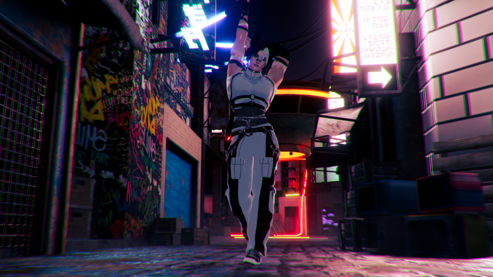 Everything else is made by me: jacket, cropped top, mesh top, arm straps, sleeve, glove, earrings, piercings, choker, necklace, waist chains, belt, leggings/underwear, POC hair, scars, mooncake & menu icons.